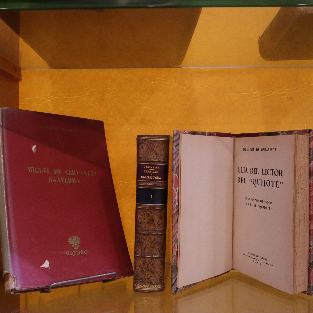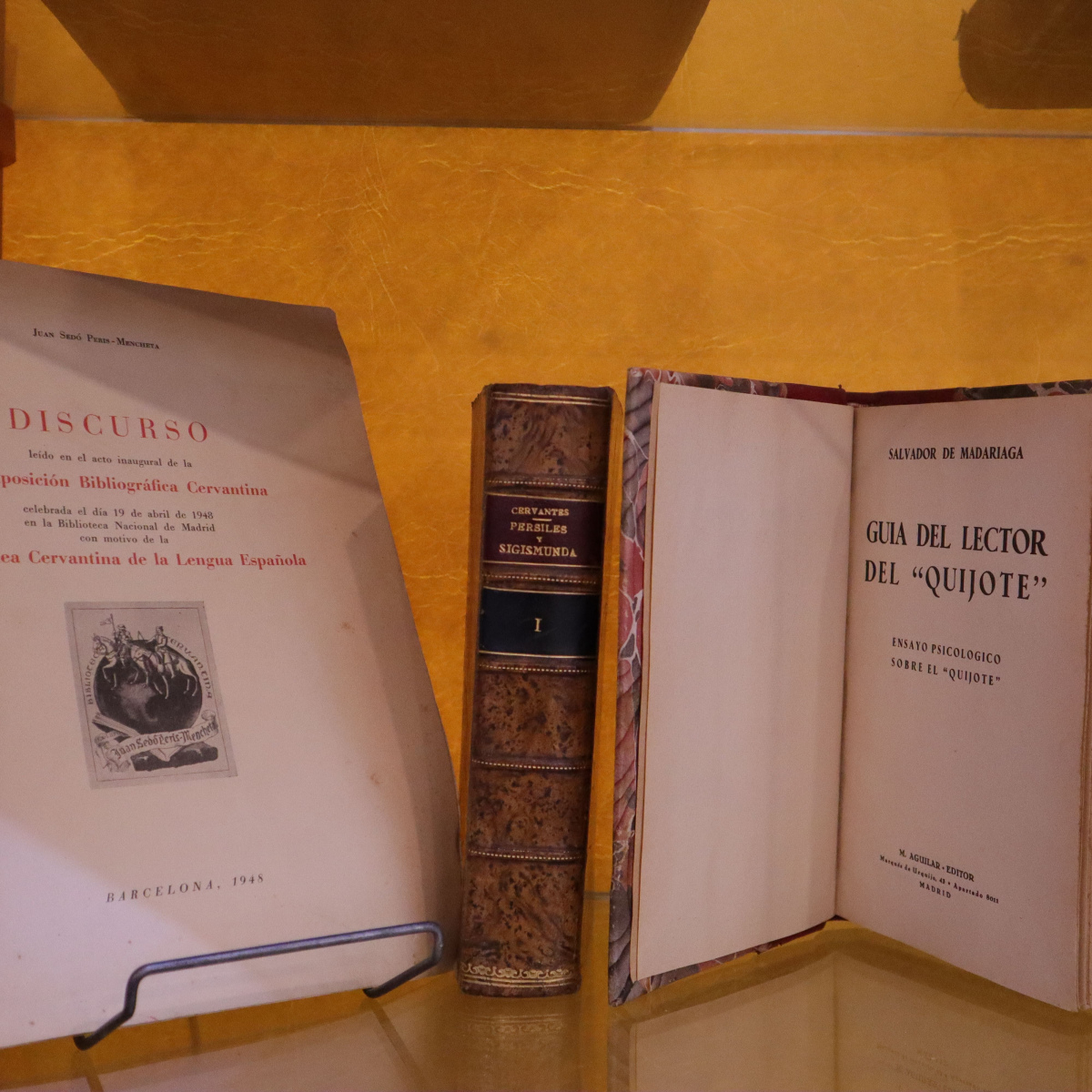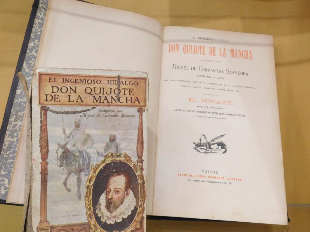 Una de las obras destacadas en la muestra es la Edición Calleja para escuelas, una joya de 1905, lanzada para conmemorar el tercer centenario del Quijote y acercar esta obra maestra a los más jóvenes. También destaca un facsímil del El Quijote que es una réplica de una obra publicada en 1615. Entre las obras expuestas se encuentra una rareza de nuestra colección que se manifiesta en una edición adornada con la broma literaria del «Buscapie» de Adolfo de Castro. Una obra que, bajo la máscara de la autoría de Cervantes, creó una polémica que aún resuena en los corredores del tiempo.