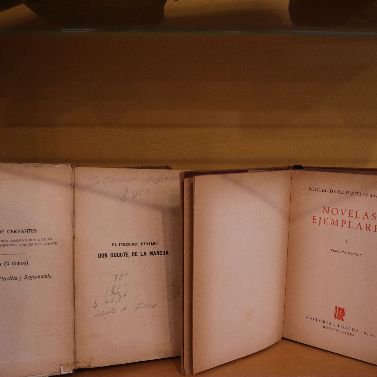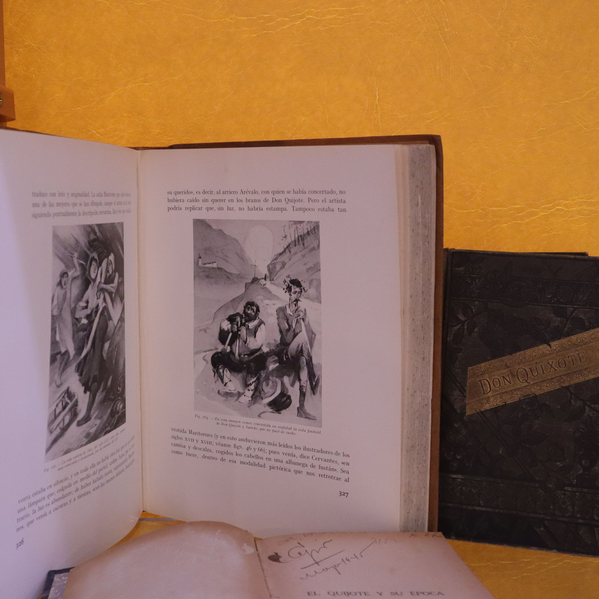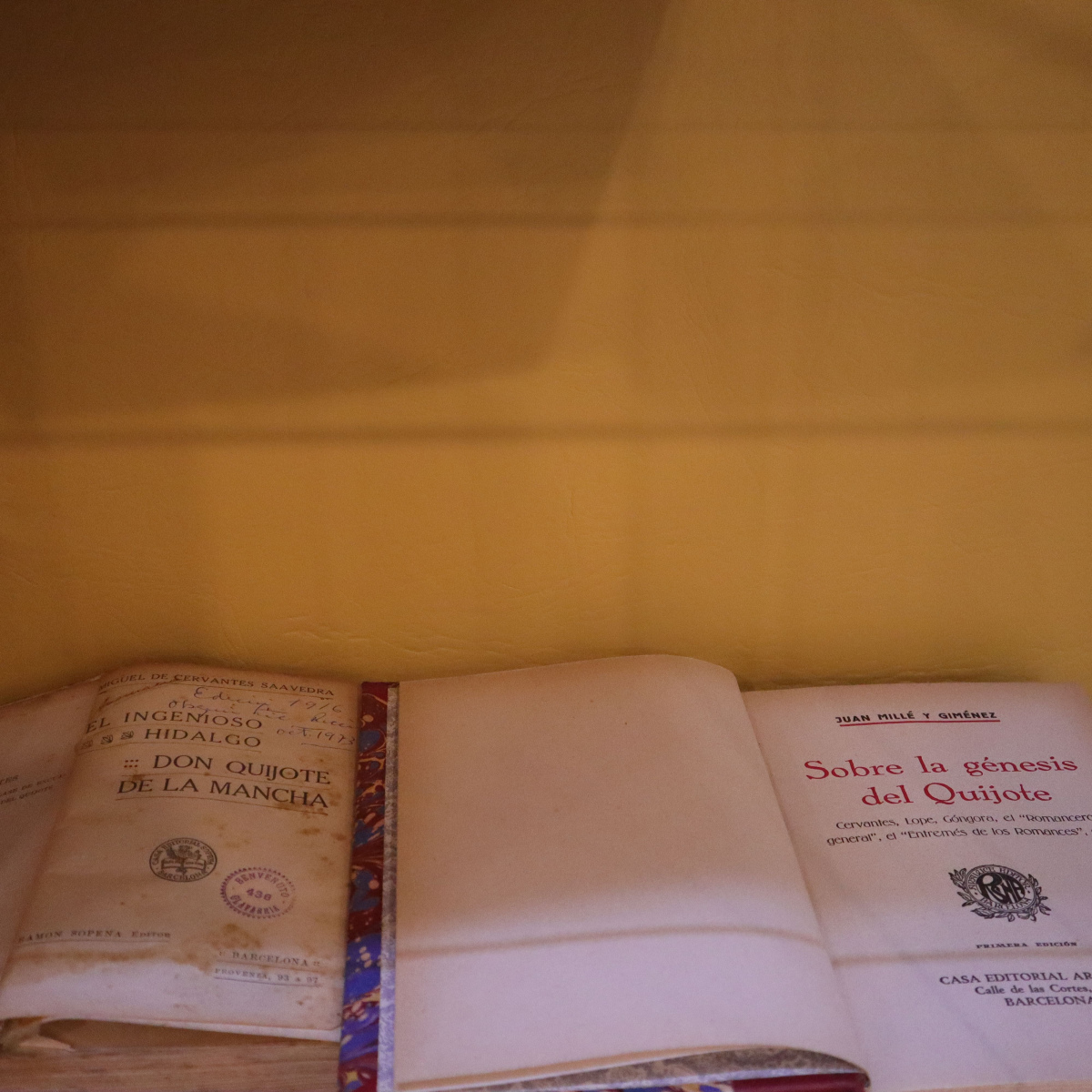 Una de las obras destacadas en la muestra es la Edición Calleja para escuelas, una joya de 1905, lanzada para conmemorar el tercer centenario del Quijote y acercar esta obra maestra a los más jóvenes. También destaca un facsímil del El Quijote que es una réplica de una obra publicada en 1615. Entre las obras expuestas se encuentra una rareza de nuestra colección que se manifiesta en una edición adornada con la broma literaria del «Buscapie» de Adolfo de Castro. Una obra que, bajo la máscara de la autoría de Cervantes, creó una polémica que aún resuena en los corredores del tiempo.