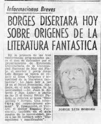 Borges disertará hoy sobre orígenes de la literatura fantástica